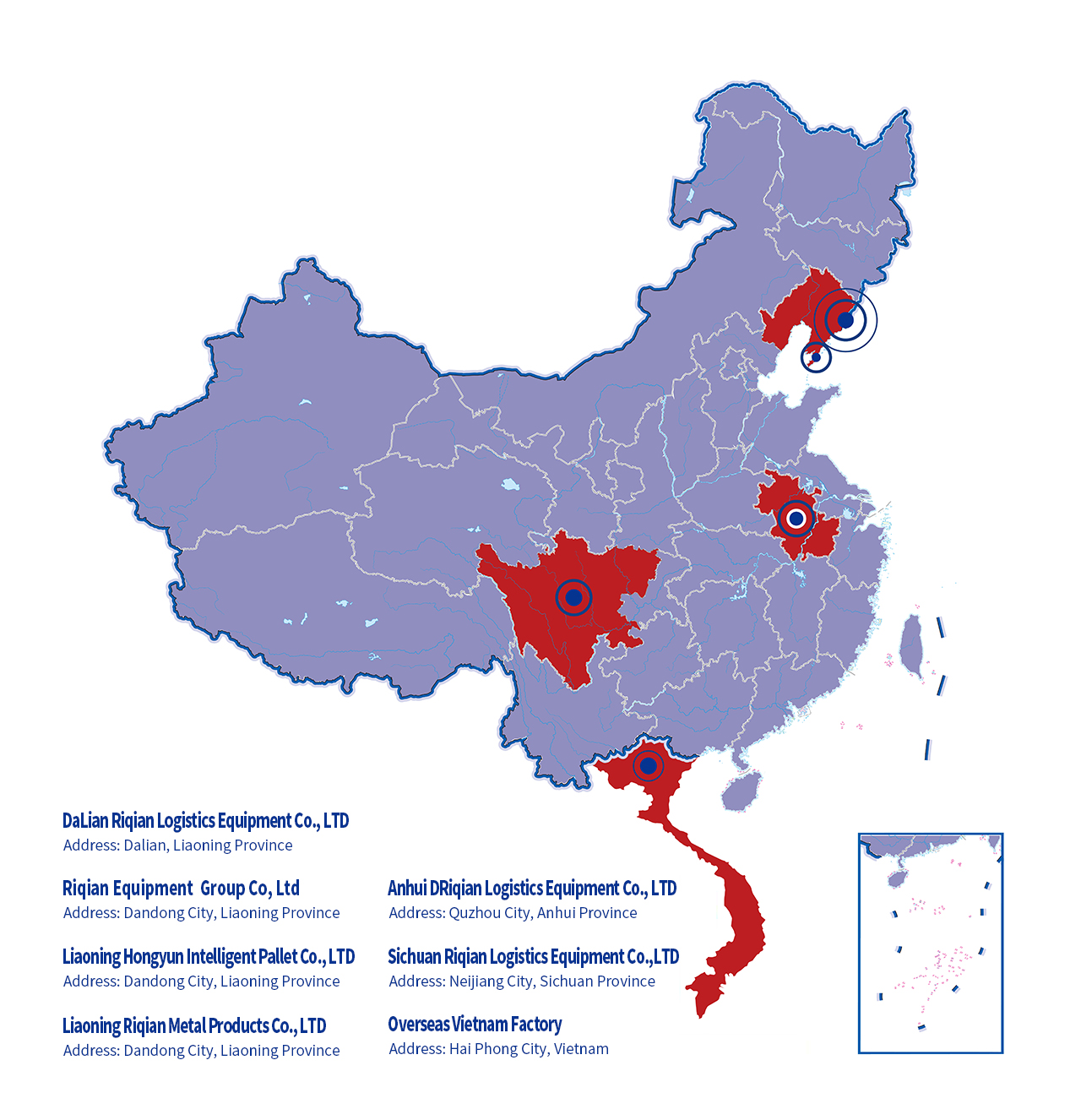 Founded in 1995, Riqian Group is a leading Chinese manufacturer specializing in unit loading and packaging. We have seven automated and smart manufacturing bases in Dalian, Dandong, Anhui, Sichuan, and Vietnam, with a total production area of over 358,000 square meters and more than 2,300 employees, and an annual output exceeding 400,000 metric tons. Our clients span across the globe, with 80% of products exported to Japan, the United States, and European countries.
